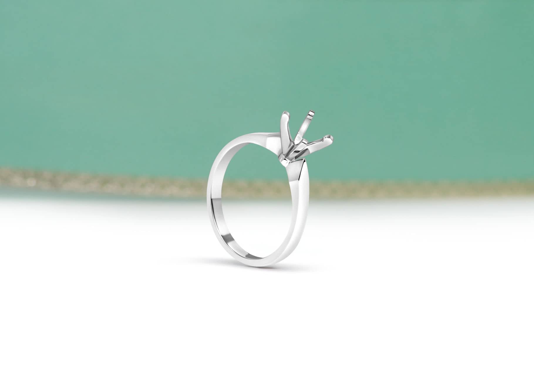 A side open, 4-prong solitaire engagement mounting.
