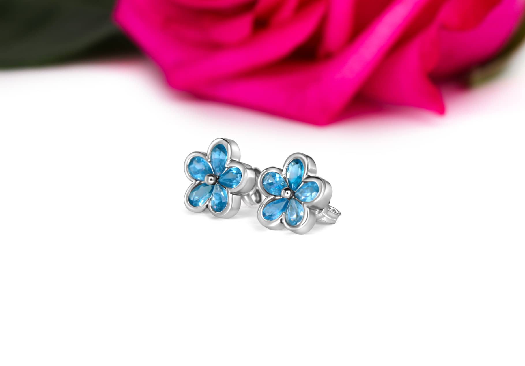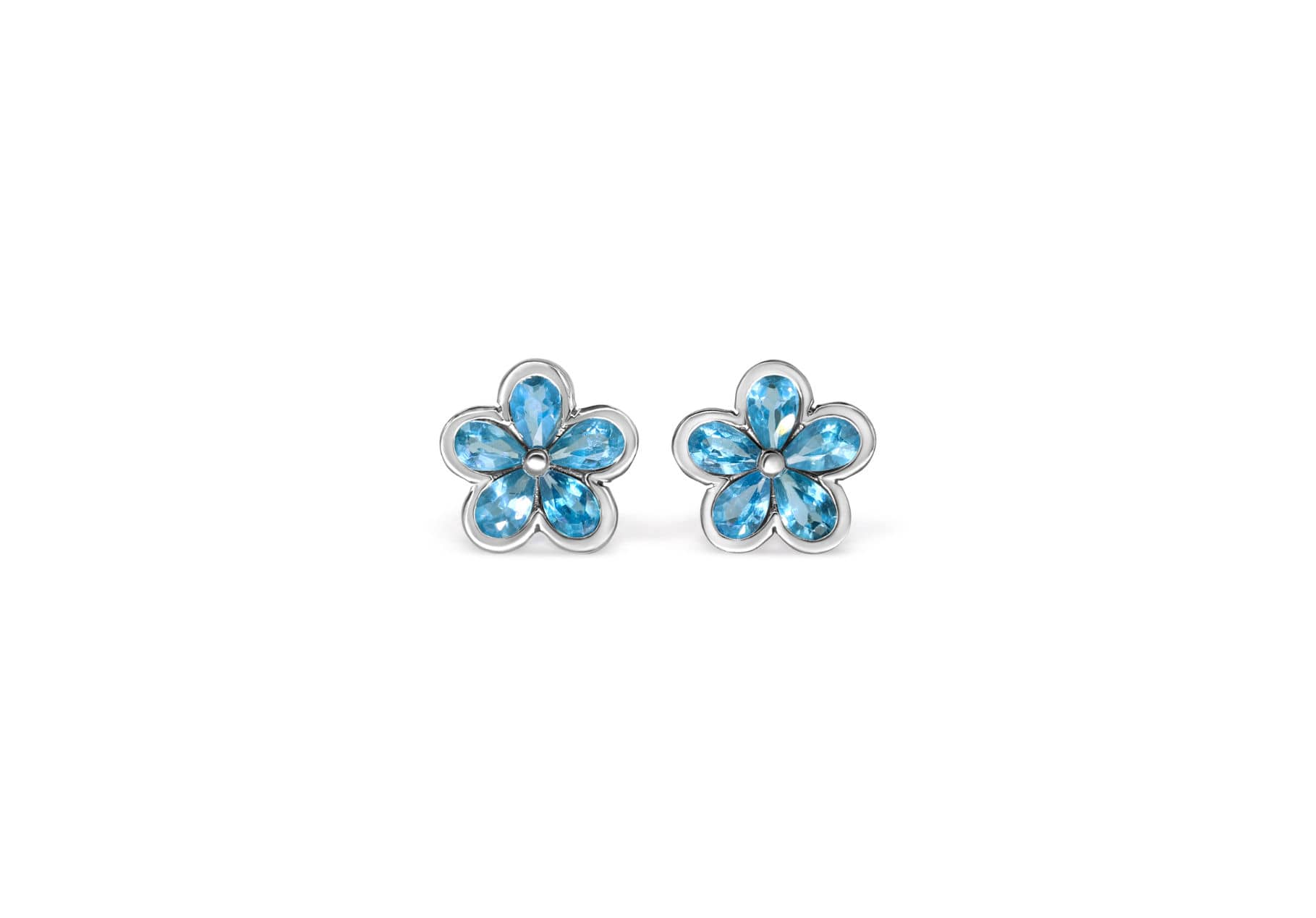 Sky blue topaz and 14K white gold earrings. 10 lovely blue topaz create an amazing floral design.