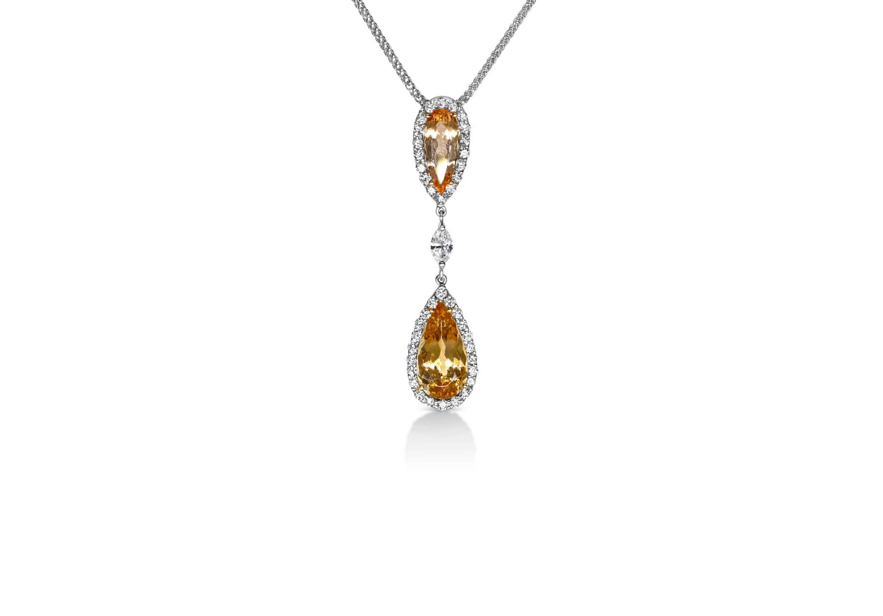 Brazilian imperial topaz and diamond pendant. Imperial topaz is notorious for its naturally orange-pink colour.