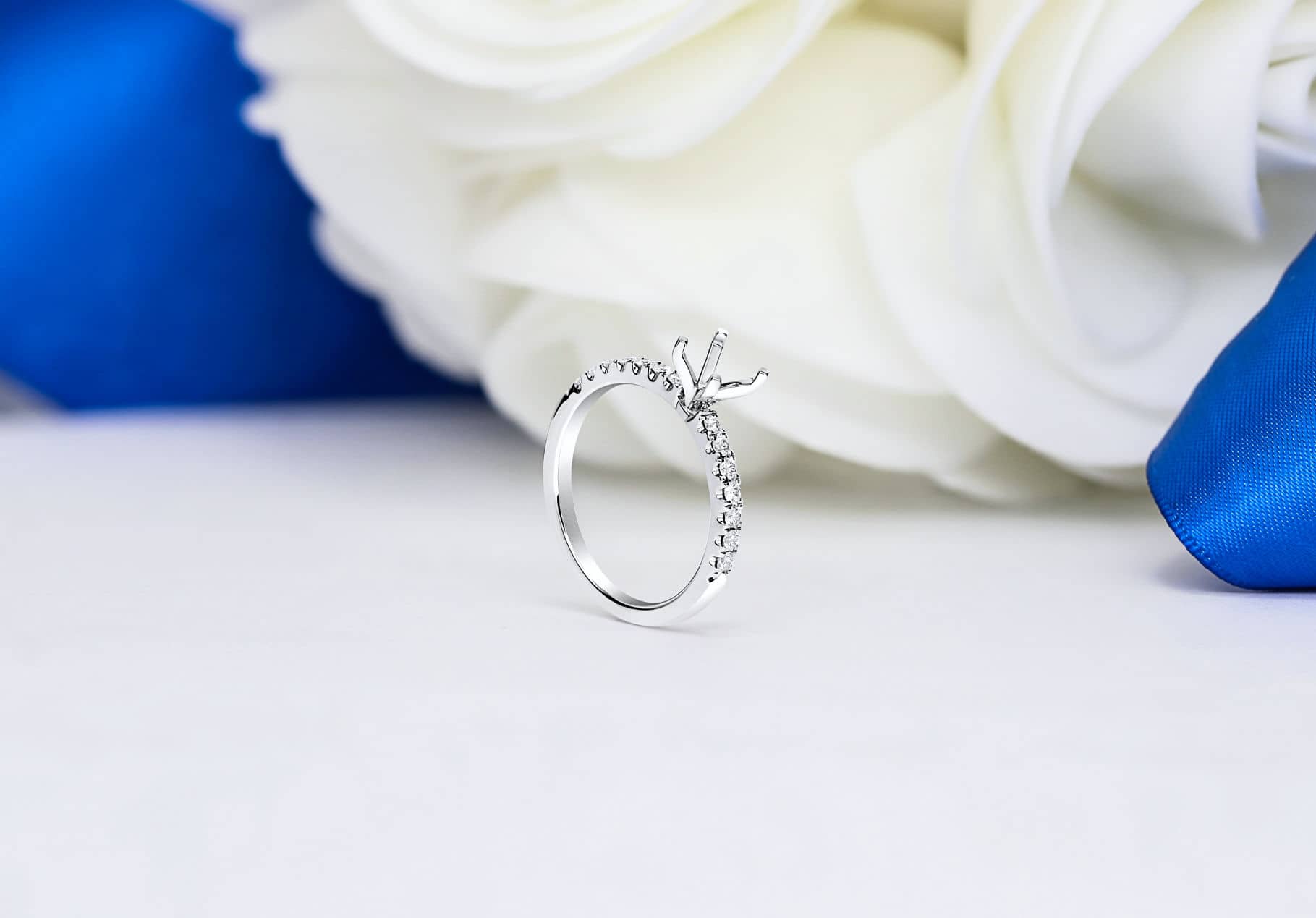 A hidden halo 4-prong diamond semi solitaire setting for oval shape.