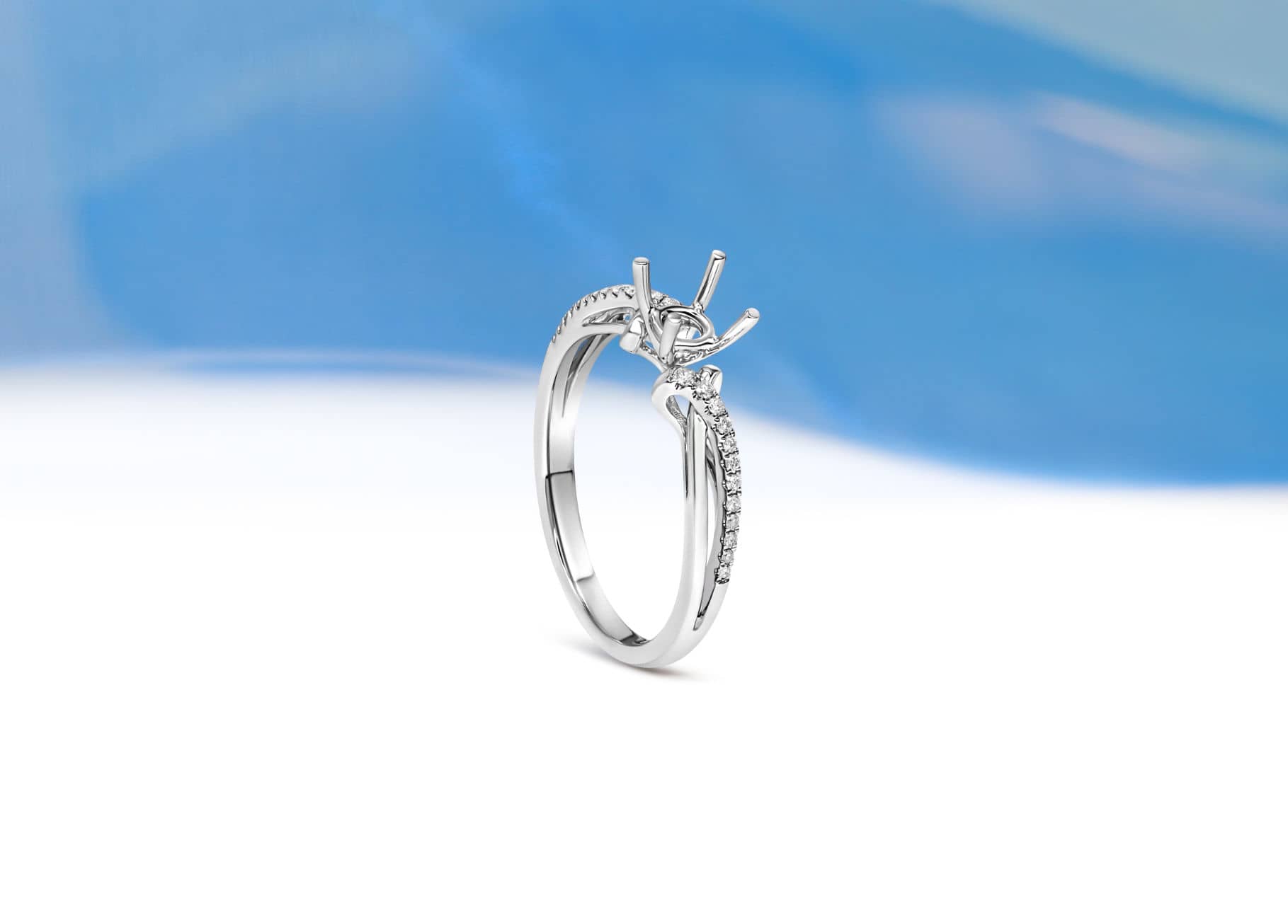 A hidden halo 4-prong diamond semi solitaire setting for oval shape.