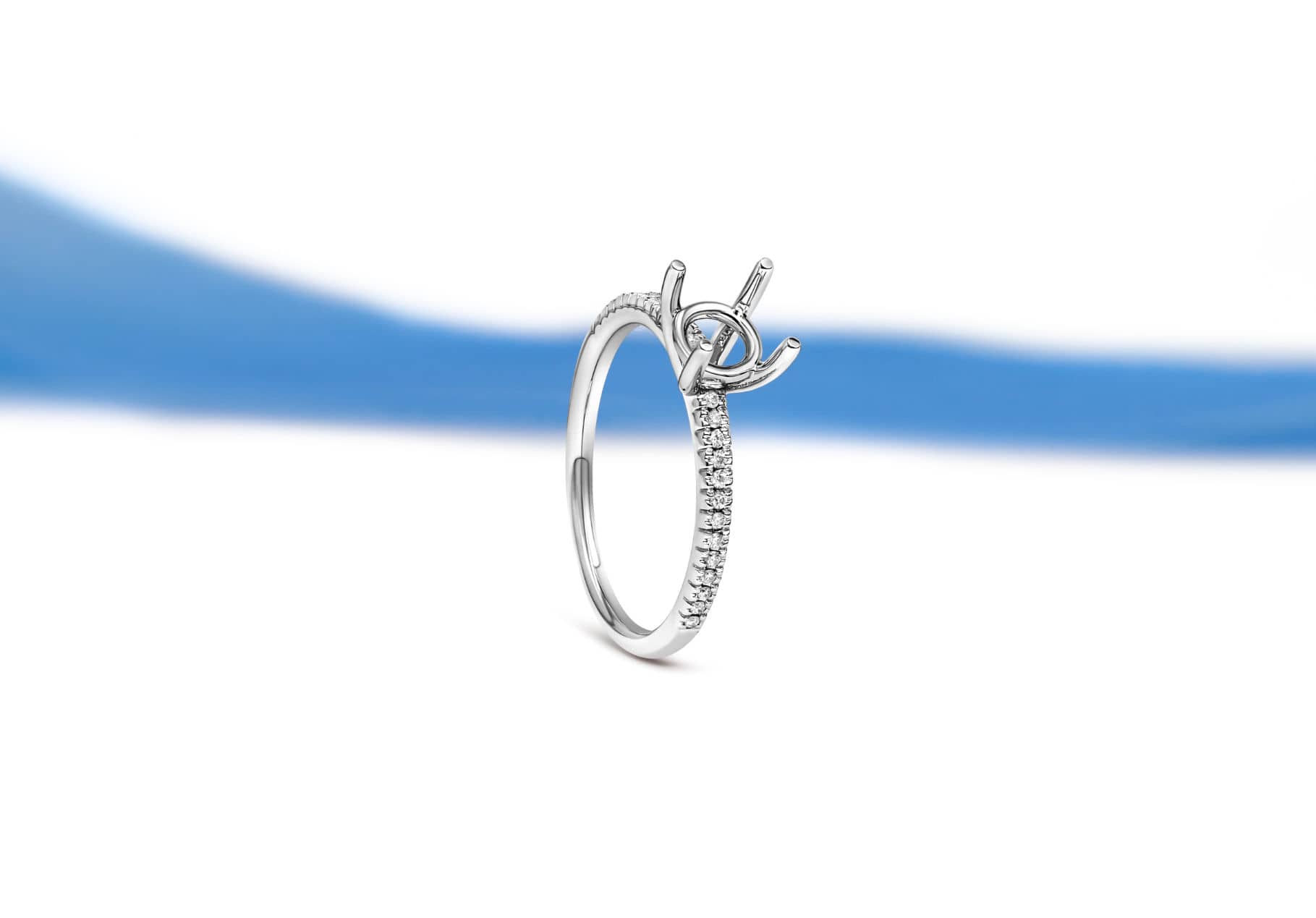 A hidden halo 4-prong diamond semi solitaire setting for oval shape.