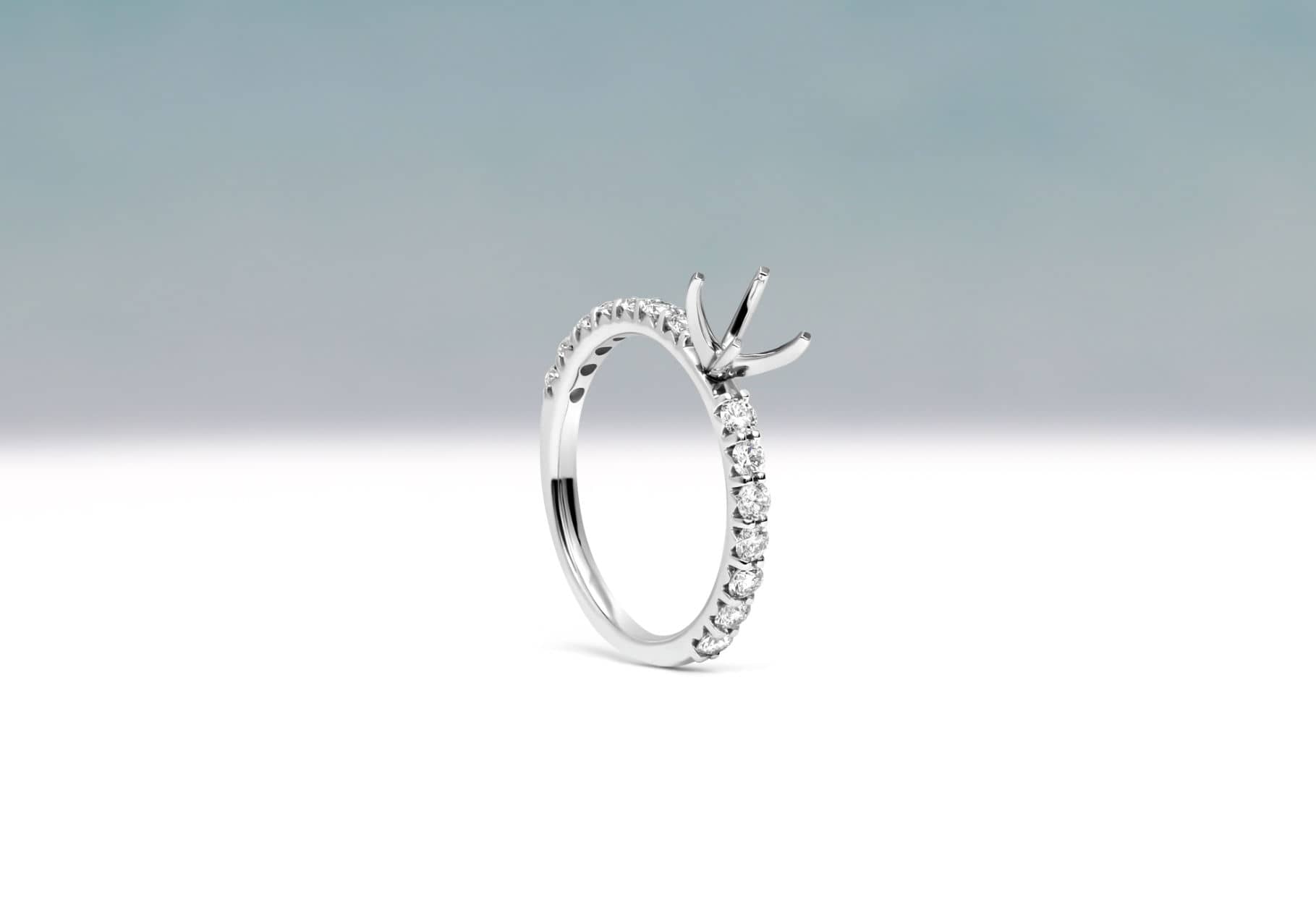 A hidden halo 4-prong diamond semi solitaire setting for oval shape.