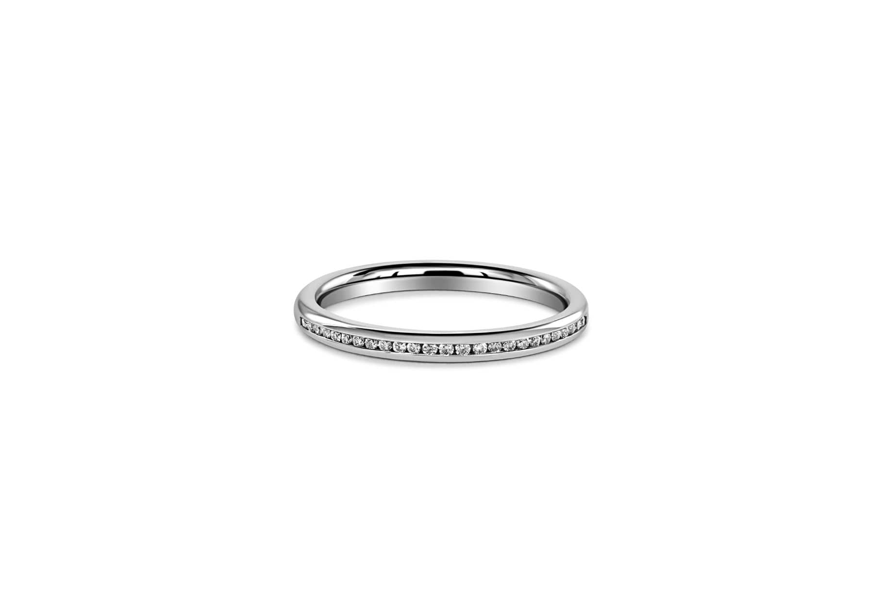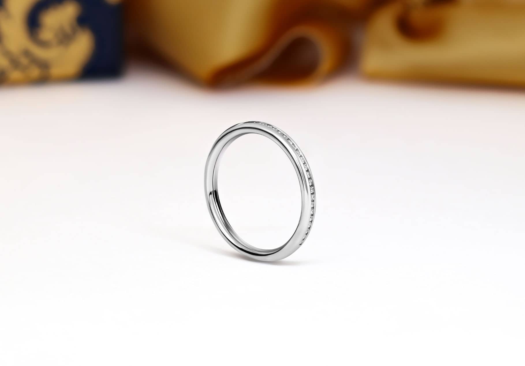 Chanel set, uniform low height, straight end dome shank, comfort fit diamond band.