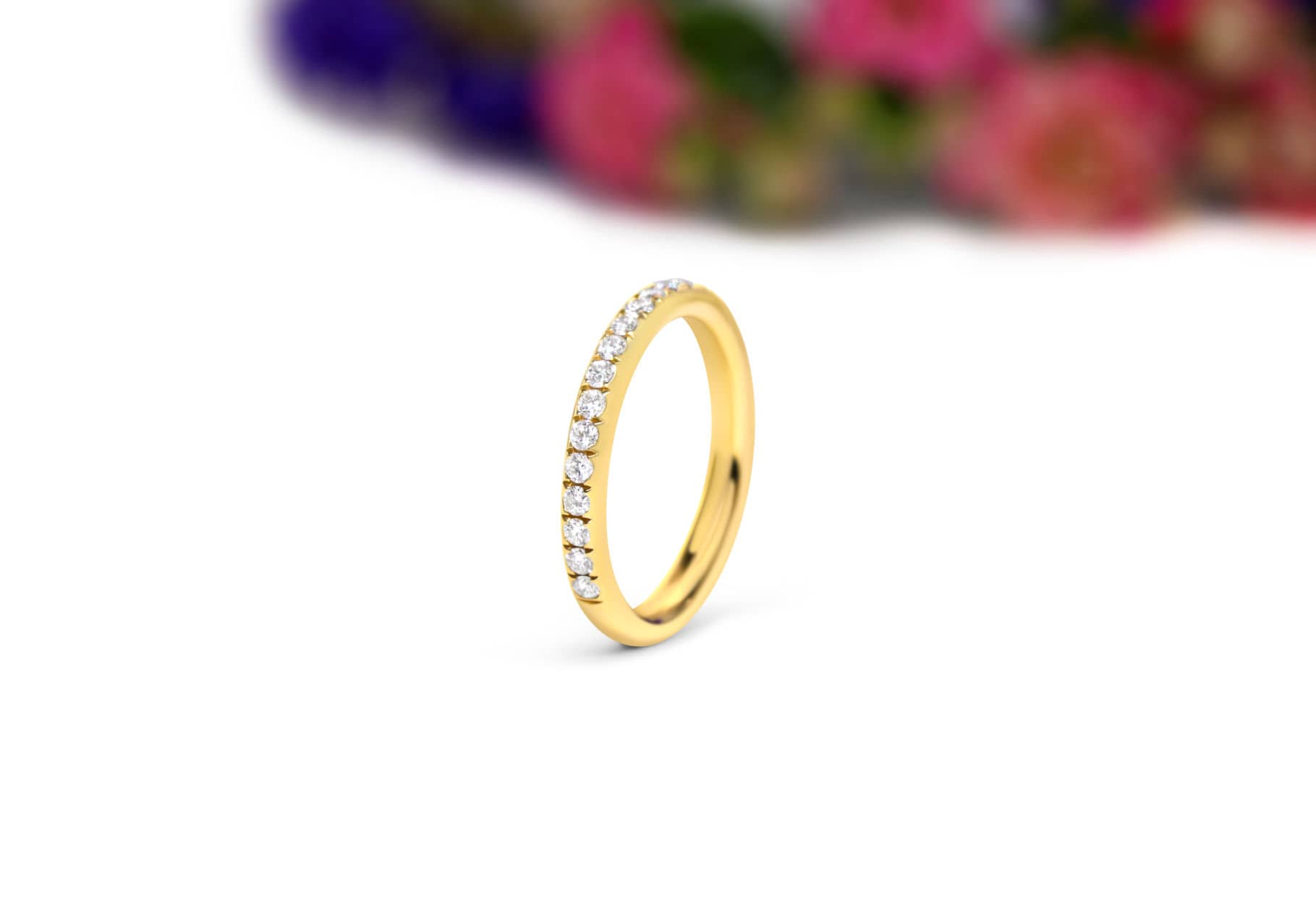 Bead set diamond wedding band. A classic low set, heavy weight design that can be matched with many other rings.