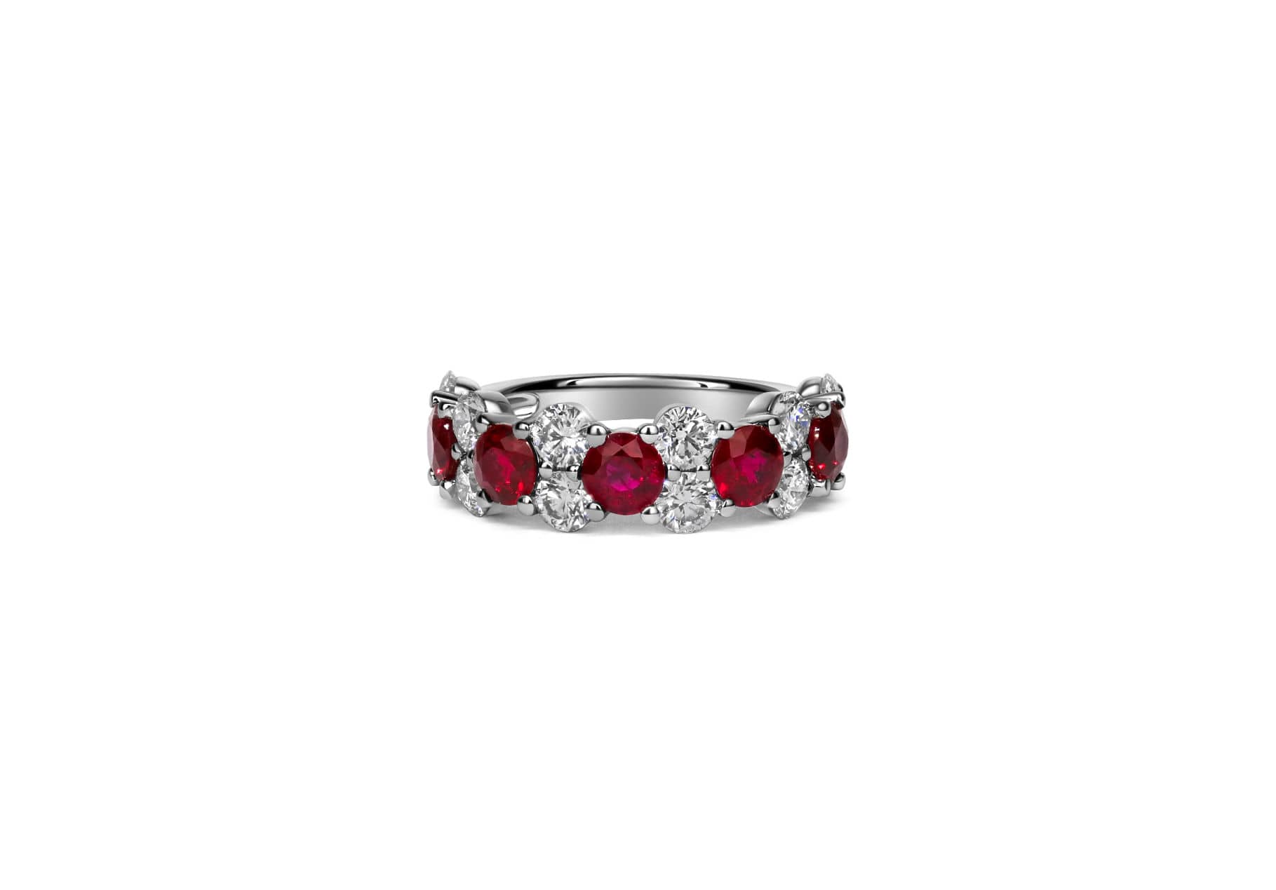 A beautiful red ruby and diamond ring with 18K white gold. Combination of high quality rubies and diamonds creates this unique piece.