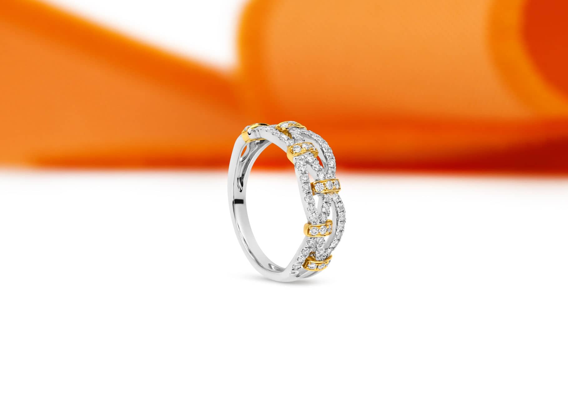 A crisscross-design diamond with 18K white and yellow gold fashion ring.